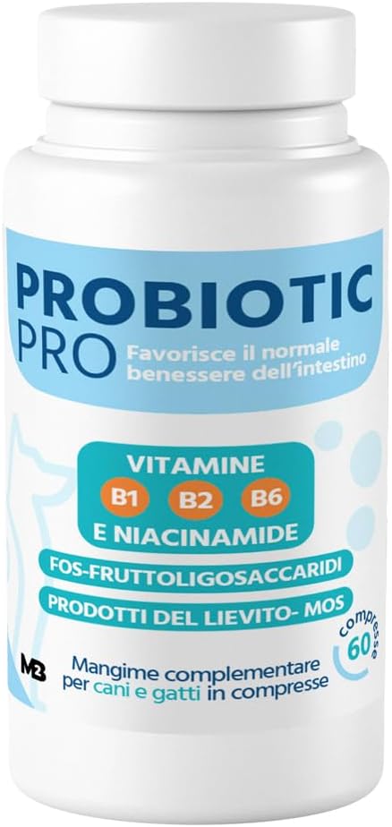 Probiotici Cani e Gatti per ripristinare la flora batterica intestinale - 60cp con Inulina, FOS, MOS, Maltodestrine, Vitamine del gruppo B per ridurre i disturbi gastro-intestinali